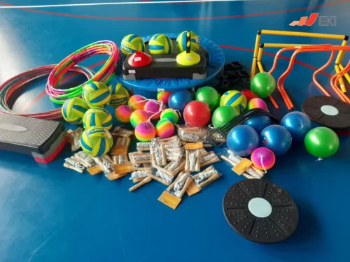 The donation was successfully realized as part of EKI's Socially Responsible Activities project during the year 2021. It included various equipment and sports gear such as balls for different sports, hula hoops, jump ropes, steppers, balance boards, and more.