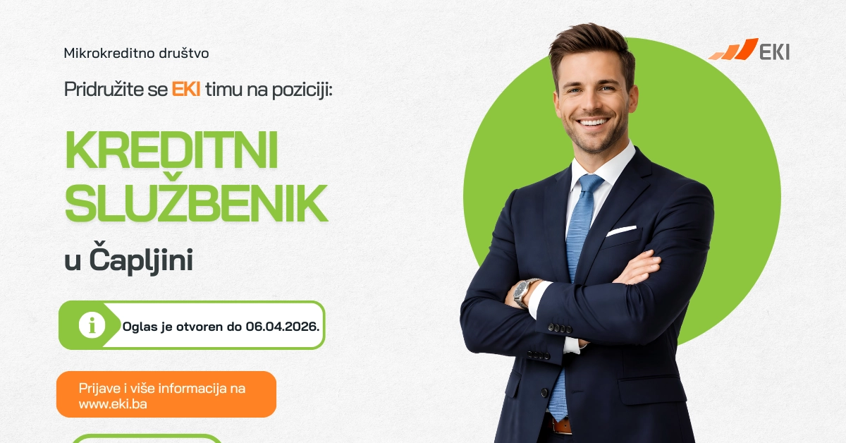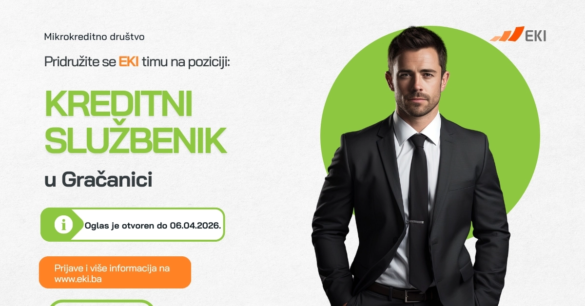 Ukoliko ste u potrazi za poslom koji Vam nudi stabilnost i razvoj – EKIpa u Gračanici Vas čeka! Pridružite se timu od preko 440 uposlenika, te svojim pregovaračkim i komunikacijskim vještinama doprinesite razvoju Mikrokreditnog društva/Mikrokreditne fondacije EKI koji na tržištu posluje već tri decenije ...